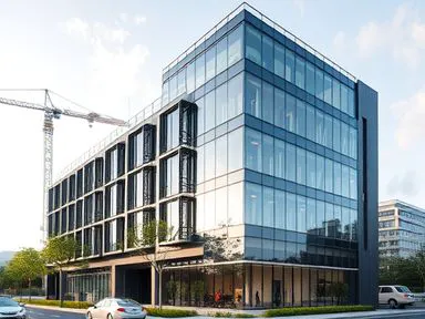 Edificio comercial de 5 pisos con certificación ambiental y tecnología verde.